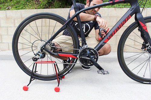 Clunky, static stands are history! Easily roll bike outside for washing or lubricating. Holds bike upright for ease of making adjustments, adding accessories or packing your bike bag.